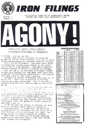 ANOTHER 24-page A4 edition, the front cover focussed on United's bold bid for promotion on the final Saturday of the season with victory at Torquay, which was thwarted only by Bolton's win at Wrexham. David Harle was unveiled as the club's first player of the year, having received his trophy in Botham's Bar at the Old Show Ground after the final league game ever played there against Exeter City. Features inside included a two-page spread on the FA Cup victory over Sunderland, When Saturday Comes' farewell to the Old Show Ground and a Sunday Express feature on Mick Buxton. Match reports penned by club members ran from Wrexham at home on November 3, 1987, to the 0-1 home defeat by Wolves on January 30, 1988.
