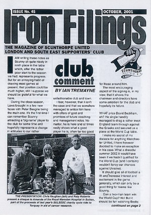 A SMALL 12-page edition, consisting primarily of match reports, starting with the season-opening defeat at Kidderminster on August 11, 2001, and concluding with the 0-0 thriller against Mansfield on September 22. Included between the two is SULSESC member Vic Duke’s report of his 25th Rochdale v Scunthorpe encounter at Spotland!